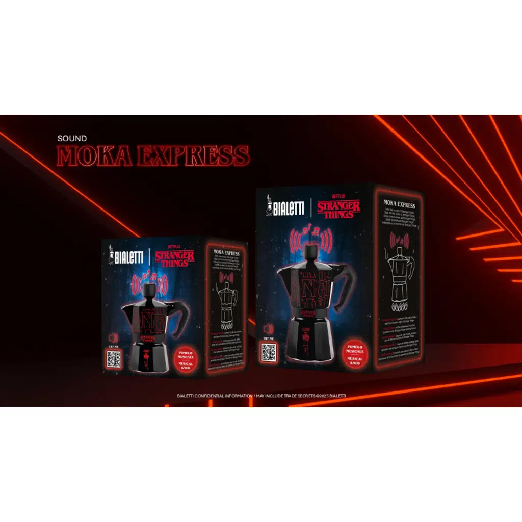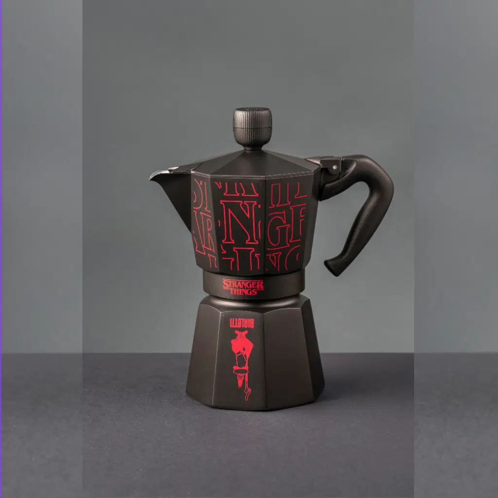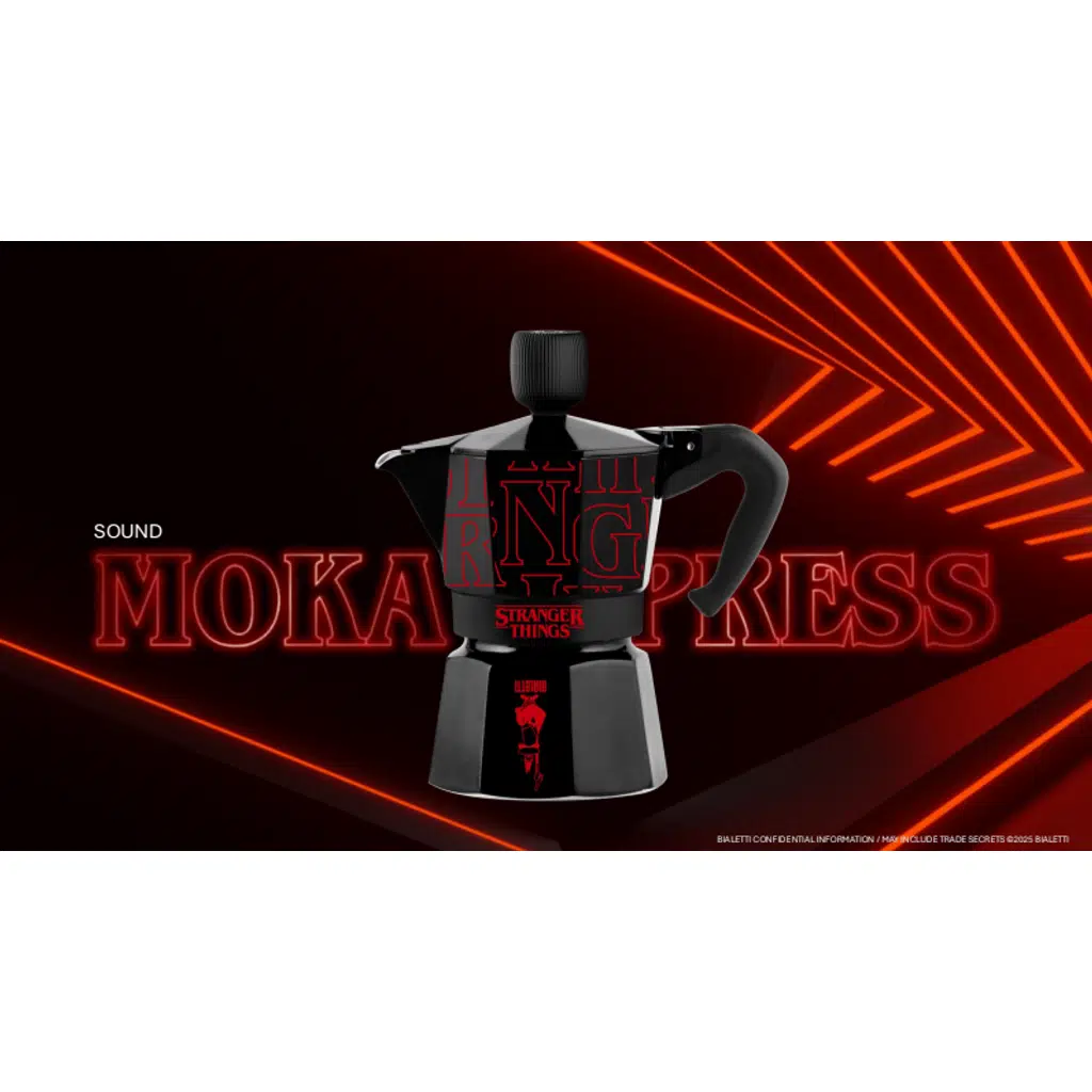 Netflix, Stranger Things Temalı İkonik Moka Express: Klasik 6 fincanlık (250 ml) ocak üstü espresso makinesi, kahve demlenirken Stranger Things tema müziğini çalan müzikli bir düğmeye sahiptir.