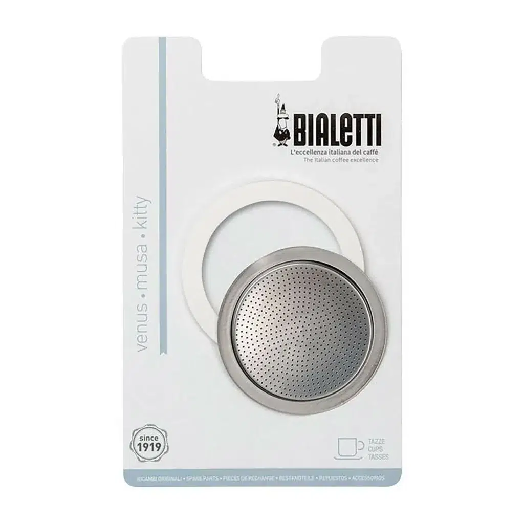 Bu bir Bialetti yedek conta ve ekran setidir. Paket bir conta ve bir ekran içerir. Bialetti Venus, Kitty ve Musa 4 Cup mokapotlara uygundur.